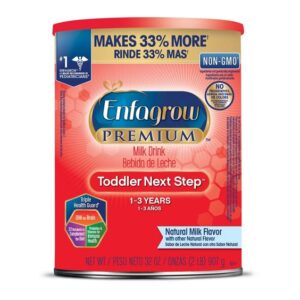Enfamil Baby Formula contains 50% more DHA and AHA for neural and eye development, and also has partially hydrolyzed nonfat milk to make digestion easy.